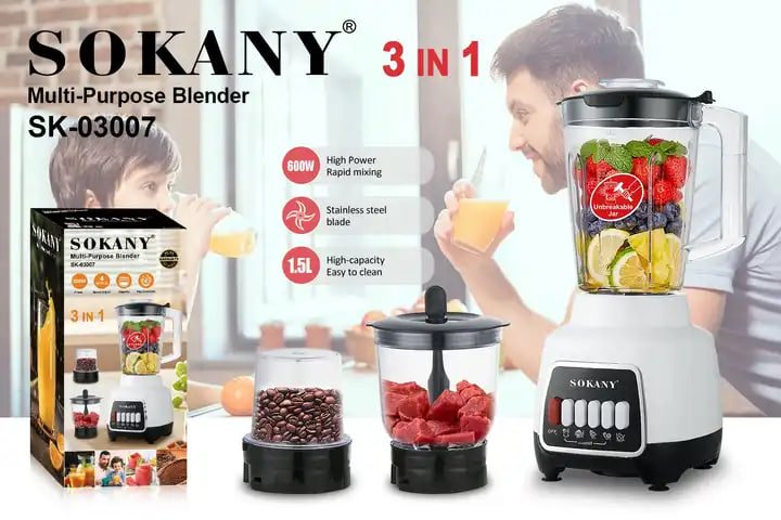 خلاط سوكاني 600وات 1.5لتر بمطحنه وكبه موديل SK-03007
