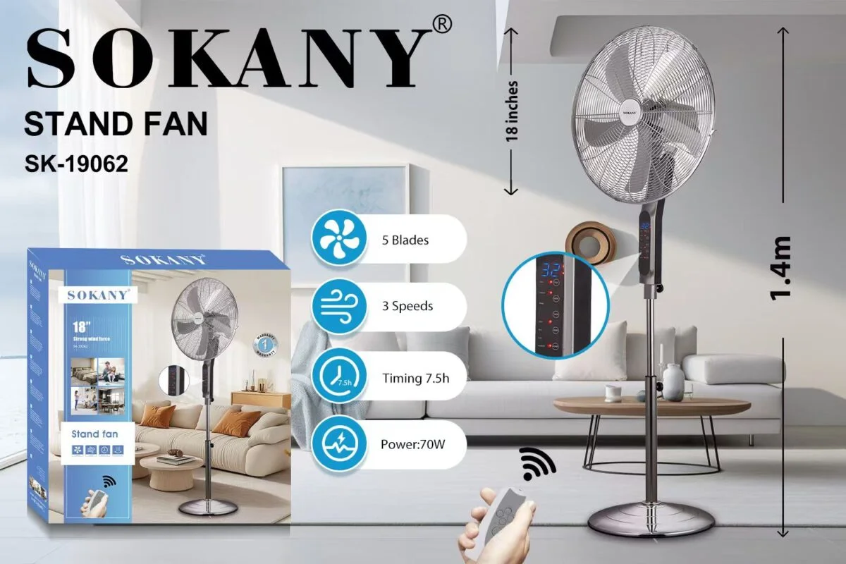 SK-19062 مروحه سوكانى استاند عامود استالنس ديجيتال + ريموت 18بوصه