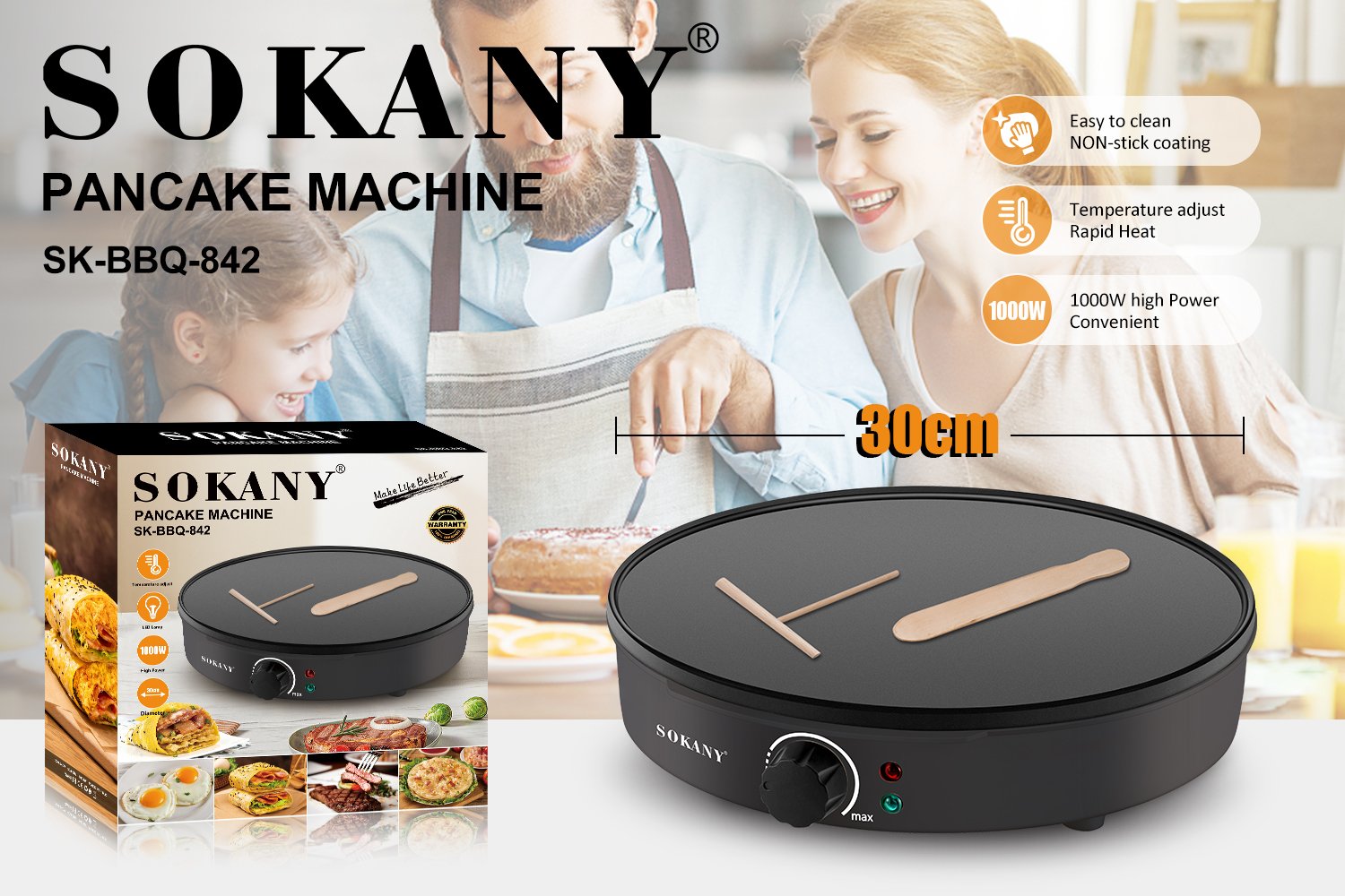 3 قطع (صانع الكريب + عصا + عصا توزيع خشب) |
